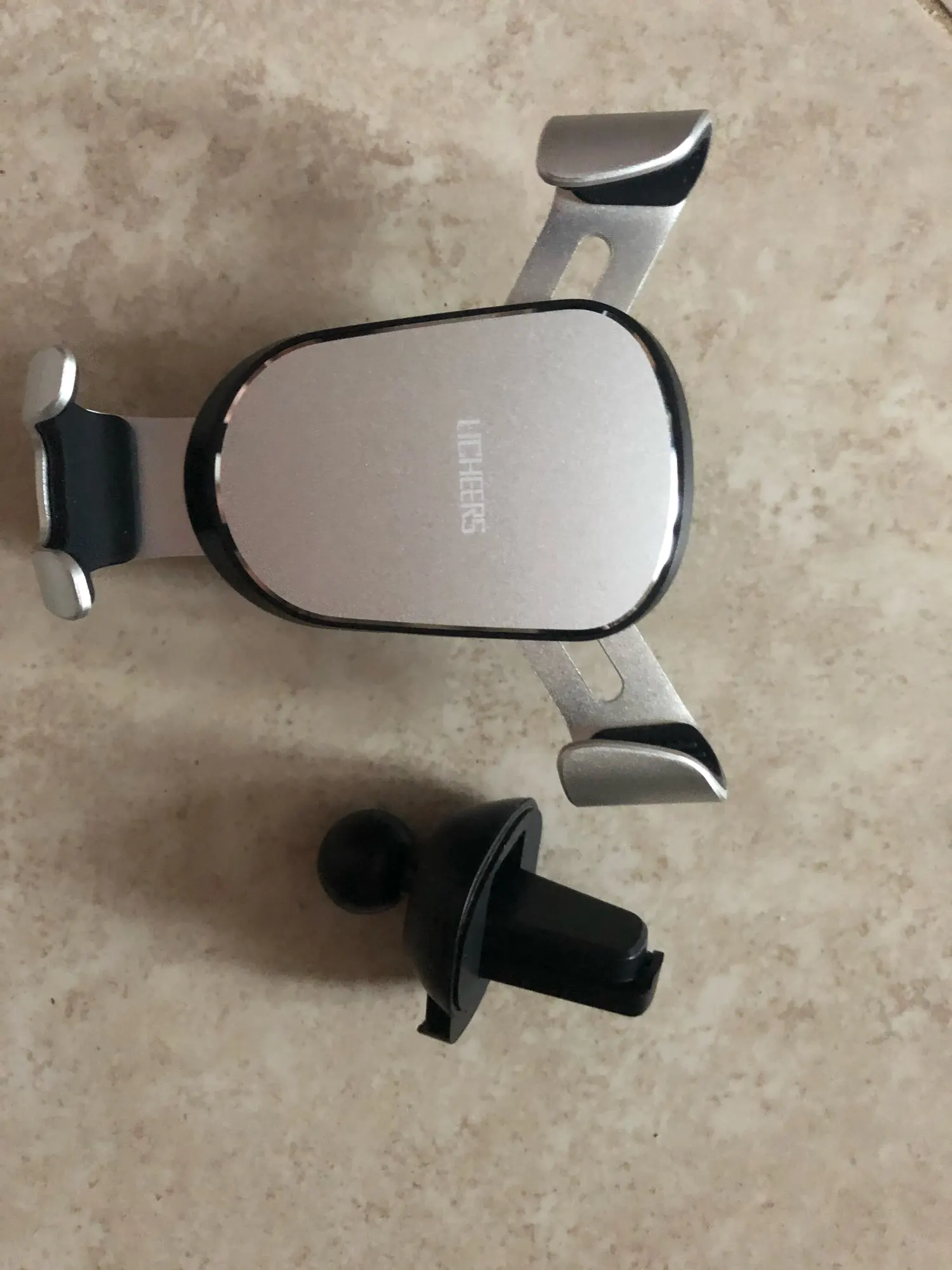 Быстрая доставка и держатель кажется достойным качеством с металлическими кронштейнами. Цвет не вполне соответствует описанию (центральный предмет-серебристый, а не черный или темно-серый, как на изображении), но я все еще доволен этой покупкой. Он стабильный и хорошо держит мой iPhone 11 Pro Max. Рекомендуем!