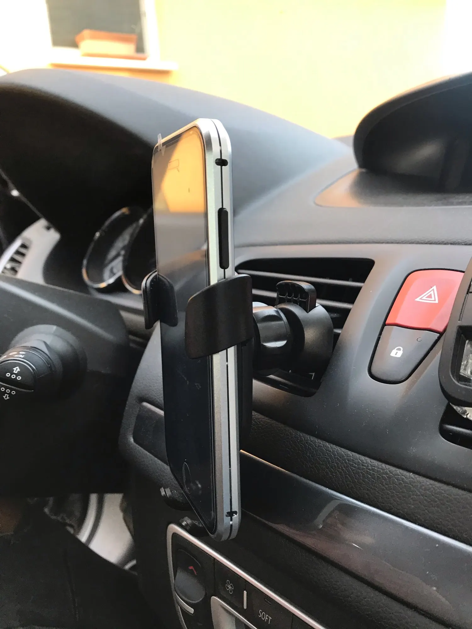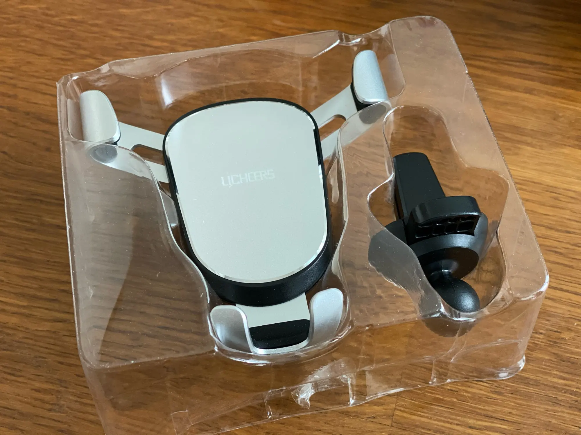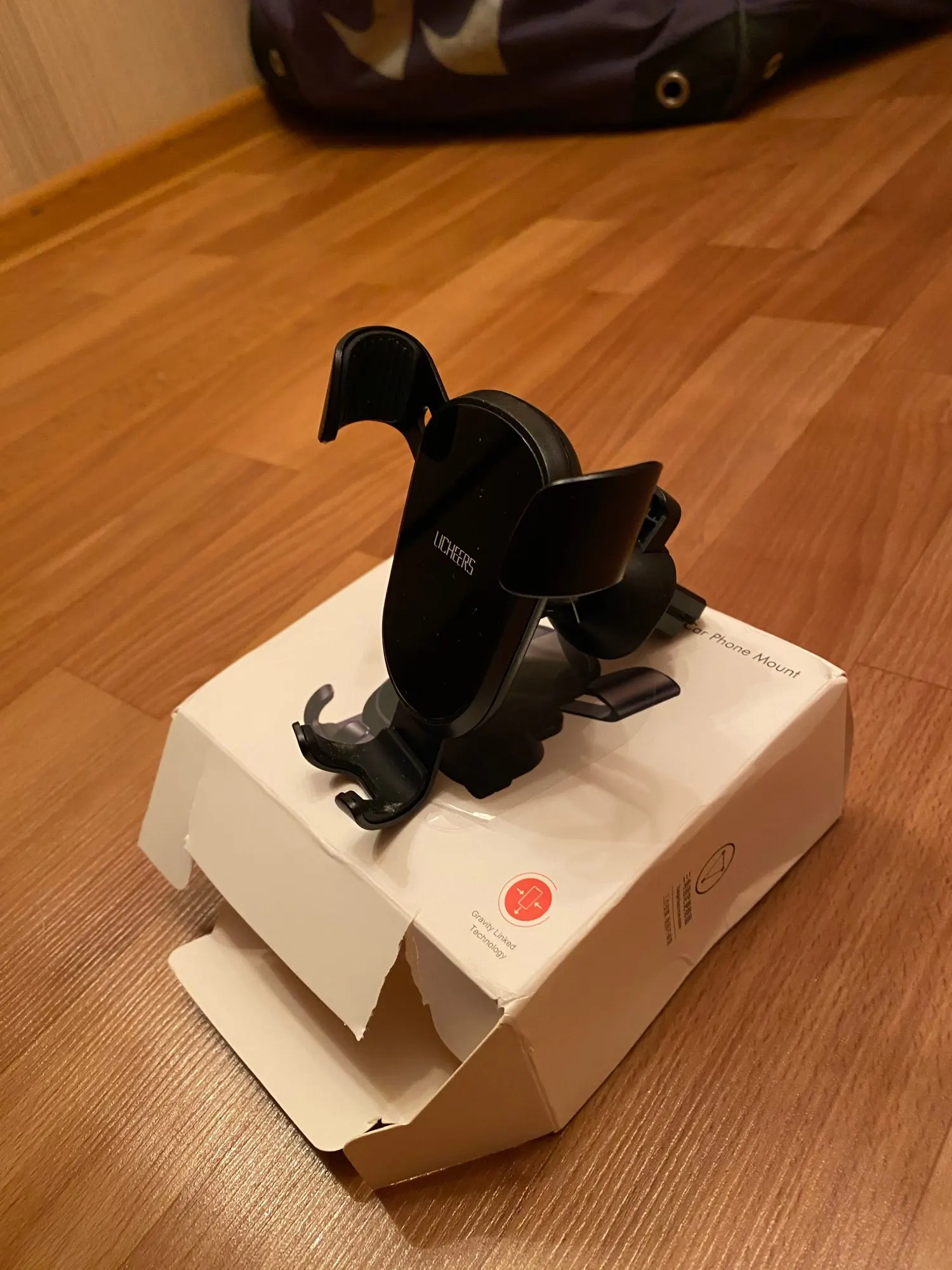 Пришло быстро. Упаковка целая, но повредить не проблема: просто коробка из тонкого картона. За решетку цепляется прочно. Но сам смартфон держится практически под собственным весом - жмет на нижнюю опору и она слегка сжимает боковые. Надо проверить на ходу...
