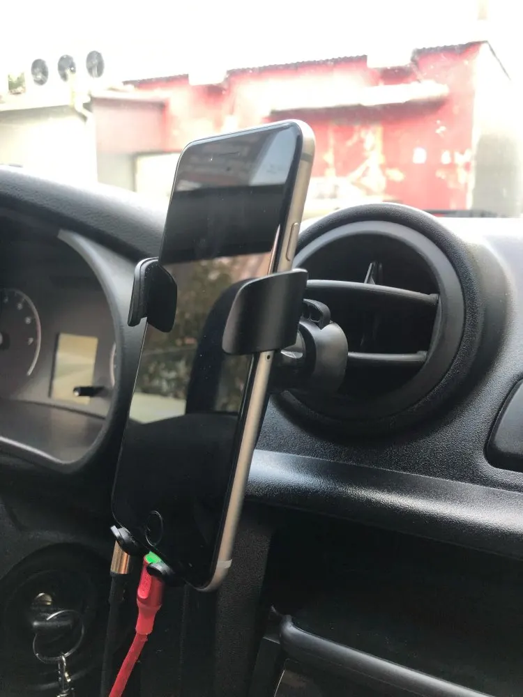 Хороший стильный держатель. Крепится надёжно. Сам очень лёгкий. Единственный нюанс, в навигаторе на моем телефоне кнопки изменения масштаба располагаются рядом с правой лапкой держателя. В результате она их немного перекрывает, что не очень удобно.