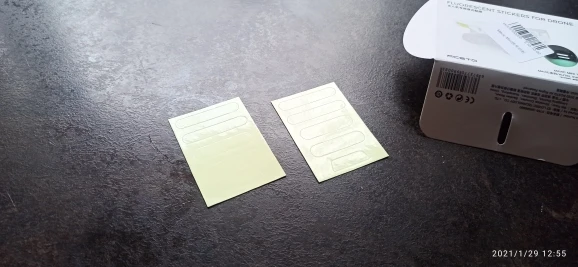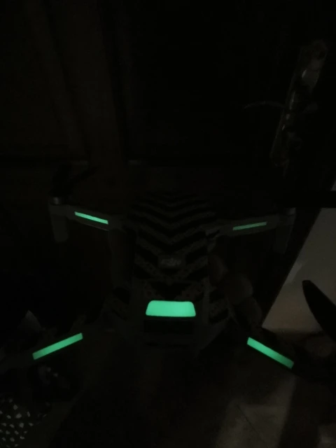 Спасибо большое продавцу! Товар пришёл отлично упакованным. Конвертик от самих наклеек очень красивый, жена сразу себе отобрала))) По размеру наклейки прекрасно подойдут на мой Air2. Фонариком 10 секунд поводил и результат на фото. Как долго будут светить в реальности пока непонятно.