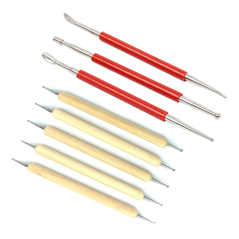 MIUSIE 8 шт. инструмент для работы с кожей точка моделирования стилус для моделирования сращивания резьбы инструмент ложка шарики тиснение резьба пресс инструменты