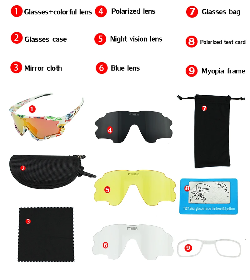 4 * линзы (1 прозрачная линза, 1 Черная поляризованная линза, 1 желтая линза, 1 полноцветная линза)