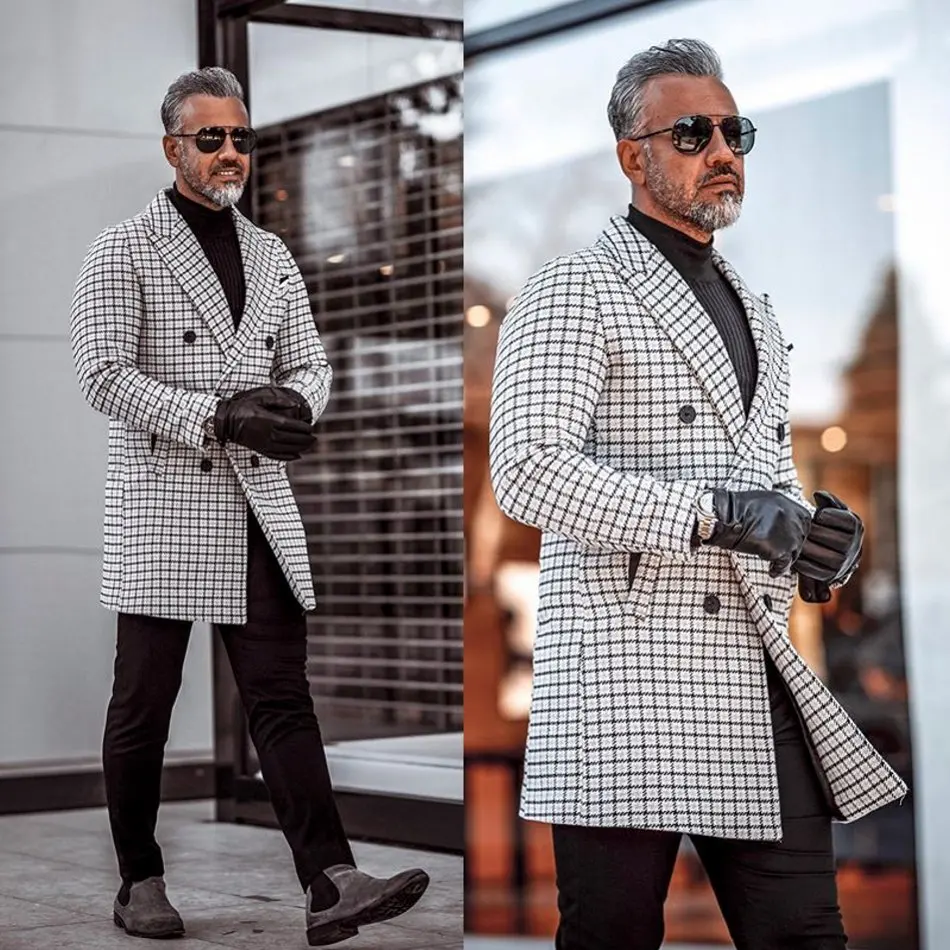 2020 модные мужские костюмы из полиэстера, костюм с отложным воротником, мужской длинный клетчатый костюм, индивидуальный пошив