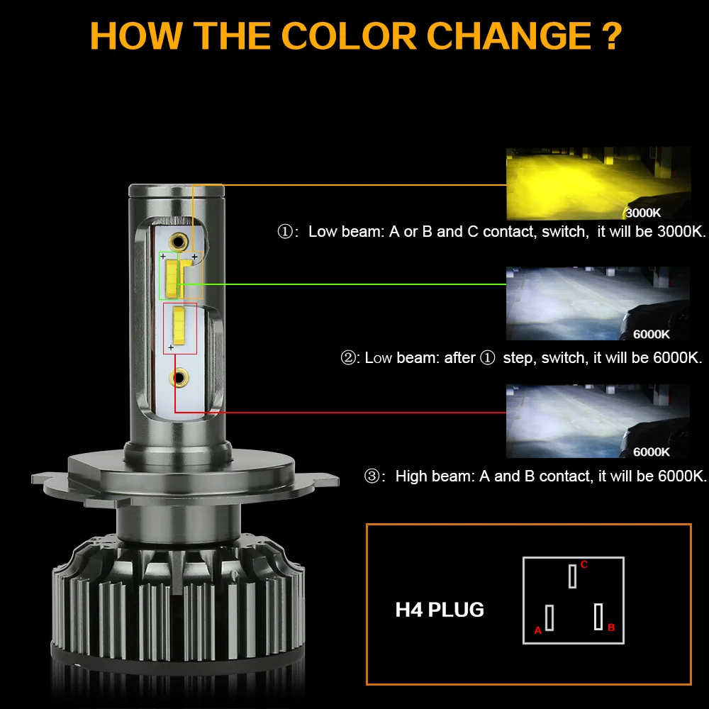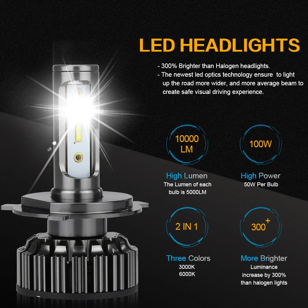 Zdatt светодиодный фар автомобиля лампы H7 H4 H1 H11 огни Canbus 10000LM 100W 3000K 4300K 6500K Turbo 12V 24V для грузовиков авто светодиодный светильник