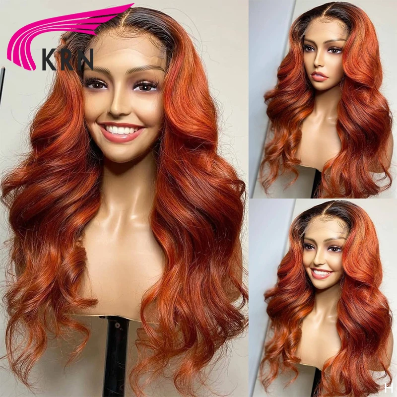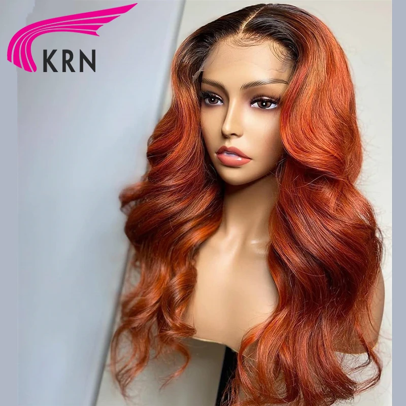 KRN Hair 1B имбирный цвет, кружевные передние человеческие волосы, ...