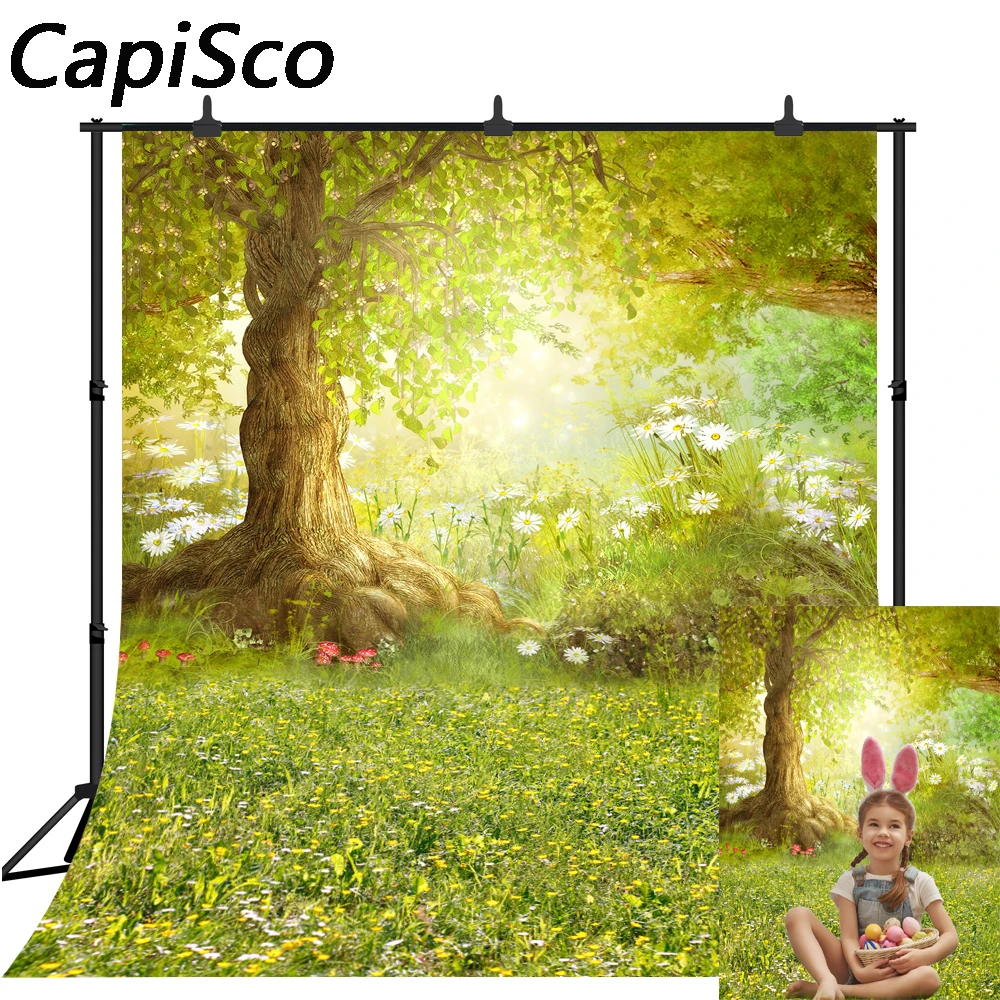 Фон для фотосъемки с изображением весенней Пасхи леса луга цветов сказок фон для фотостудии Фотофон для фотосъемки