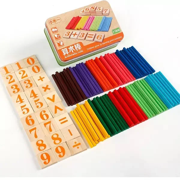 Хороший продукт, доставка в Европу занимает всего 2 недели. Точные фотографии. Длина палочек около 8 см, каждая цифра (включает ноль), за исключением № 9, находится в коробке дважды. Плюс, минус, размножаться, делить, выводить каждую единицу. Яркие цвета, без запаха, деревянные. Моему сыну нравится этот товар.