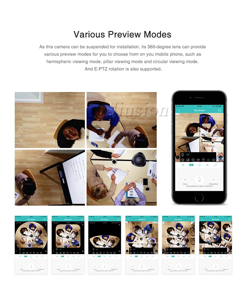 1. Панорамный вид на 360 градусов; 2. Поддержка обнаружения движения; 3. Расширенный e-PTZ на сплит-видео. 4. Одновременная поддержка нескольких потоков H.264; 5. Приложения для iPhone и Android доступны для удаленного просмотра; 6. Бесплатное клиентское программное обеспечение Max.25CH; 7. Plug & Play умный доступ без настройки IP через роутеры; 8. Поддержка просмотра paging, автоматический круглый тур 9. Поддержка цифрового зума при просмотре и воспроизведении; 10. Очень прост в эксплуатации и установке.