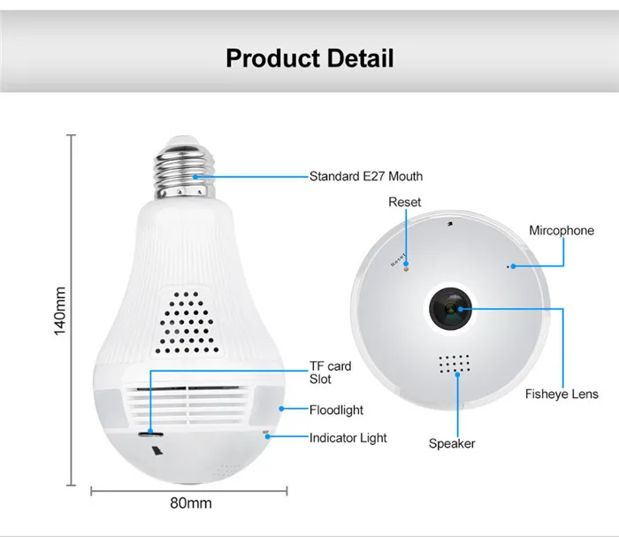 Feature 4Panoramic Fisheye Lamp IP Video Voice Audio Recorder action camera