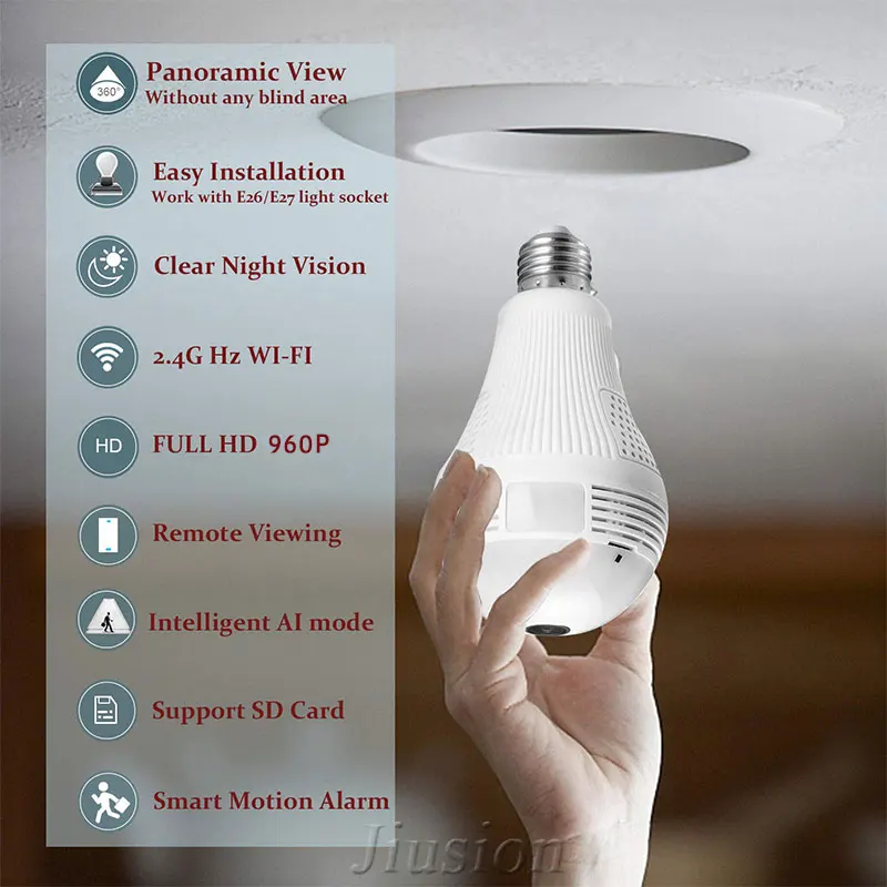 Лампа светильник беспроводная IP камера Wi-Fi рыбий глаз 960P 360 градусов полный обзор Мини CCTV камера 1.3MP Домашняя безопасность WiFi камера панорамная