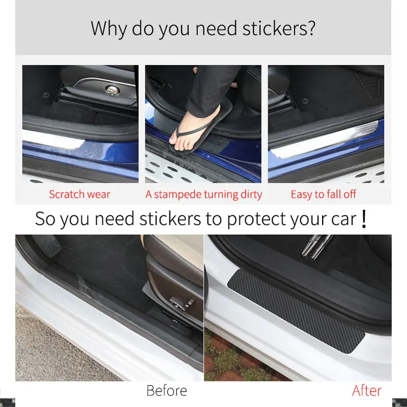 4 шт., наклейка на порог автомобиля, защита от царапин, углеродное ...
