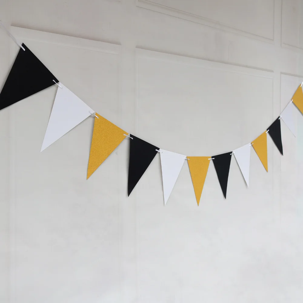 12 флагов, белые, черные, желтые гирлянды, баннеры для дня рождения, баннеры для детского душа, Свадебные гирлянды из флажков вечерние украшения