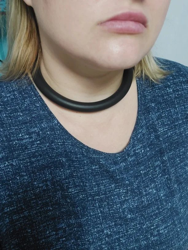 класный чокер,резина.Один в один как на модели.Немного красит одежду,горловину.