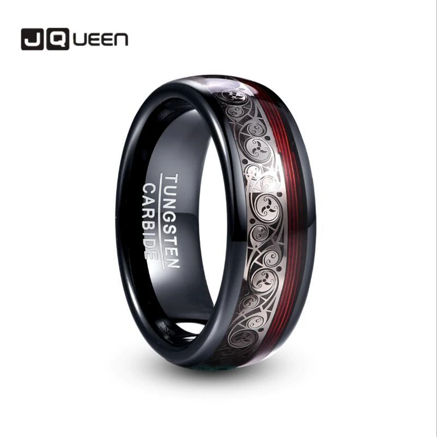 JQUEEN 8 мм широкое кольцо из вольфрамовой стали с черной инкрустацией тройной спиральный узор + красная гитарная струна кольцо из карбида вольфрама Лидер продаж