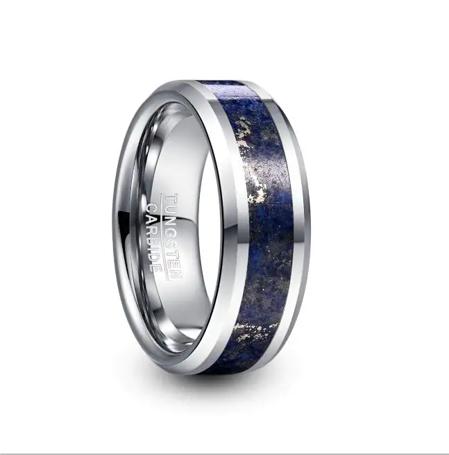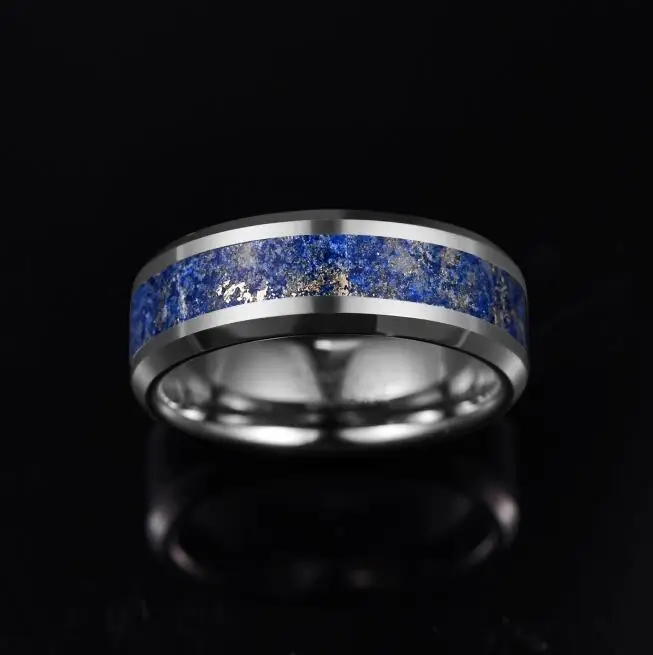 Новое кольцо из карбида вольфрама шириной 8 мм, обручальное кольцо для мужчин, Т-образный стальной цвет, инкрустированное Лазуритом, Вольфрамовая сталь, мужское кольцо T230R