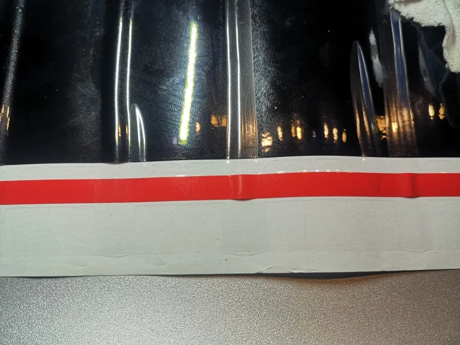 Хорошие добротные полосы, от оригинала отличает 3 вещи: первая это то, что белые полосы отдельно клеятся от черно, в оригинале это все вместе, второе - углы на концах не закруглены, и третье - сами полосы в оригинале глянцевые. В целом хорошо и доставка без задержек.