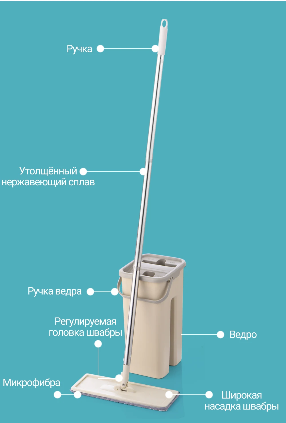 Очень хорошая швабра с ведром, ведро состоит из двух отсеков, в один вливаете воду, а с помощью другого выжимаете, при мытьё пола сама швабра пытается сложиться в то положение, подходящее для засовывания в ведро, что очень не удобно при мытье. Доставка была очень быстрой. Впечатление по ней хорошее.