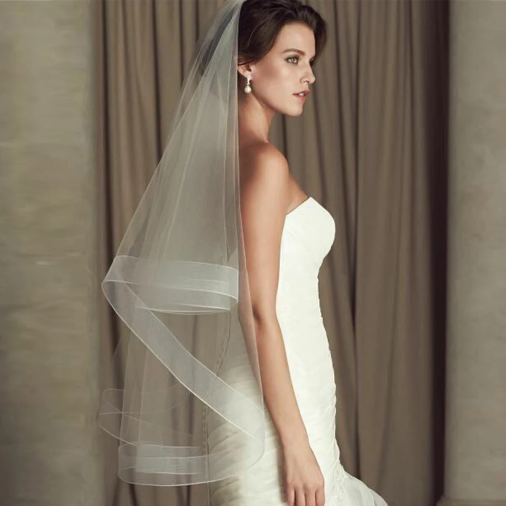 Новинка 2020, однослойная белая Фата для невесты, короткий свадебные фаты для невест без гребня