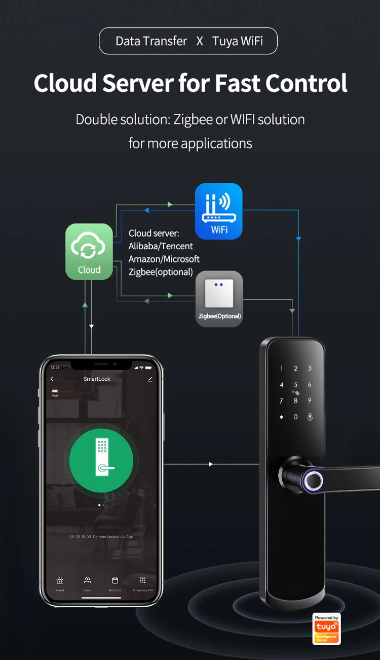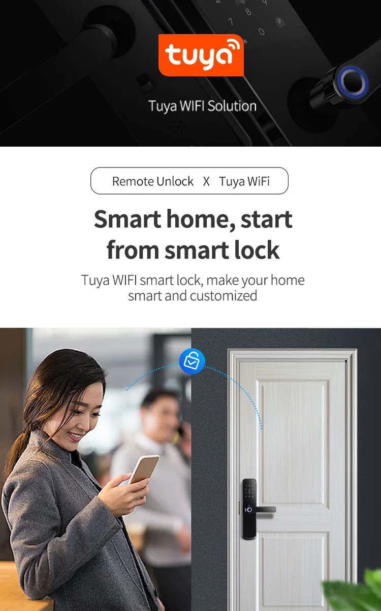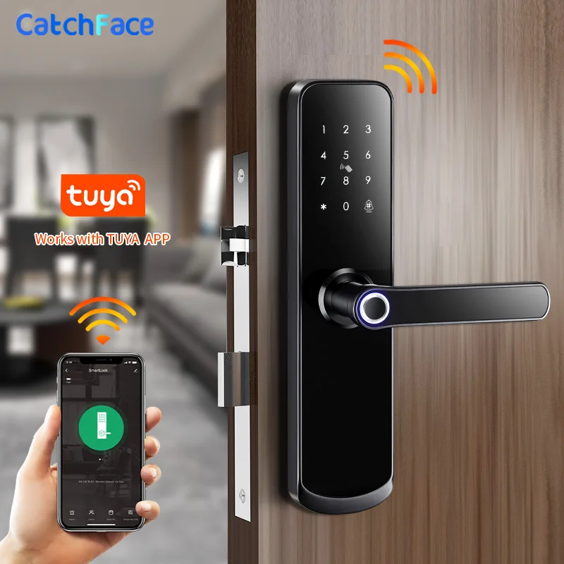 Tuya app Блокировка двери по отпечатку пальца Wifi код карты ключ Сенсорный экран умный дверной замок безопасности цифровой электронный замок для дома