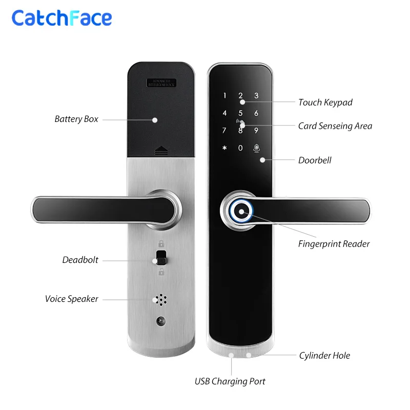 1. Доступ с помощью приложения Wi-Fi, M1 карты, отпечатков пальцев, кода пропуска, браслета или ключа2. Совместимость с различными врезными деталями для 99% дверей.Один latch60/70, Европейский 5050/ 6050 / 3585/ 4585/ 6085/ 6072 / 55723. Оснащен дверным звонком4. Биометрический датчик отпечатков пальцев с одним касанием на считывателе.Сканер отпечатков пальцев автоматически проснется после того, как вы поместите палец на него и удобно расположить, чтобы сопровождать ваше естественное положение руки.Одно бесшовное действие позволяет вам разбудить замок, прочитать отпечатки пальцев и разблокировать дверь.Действие разблокировки занимает всего 1 секунду. Он может автоматически блокировать вашу дверь для вас, чтобы ваш дом всегда был в безопасности.5. Прочная и надежная панель замка из алюминиевого сплава, антикоррозийная и учебная.6. Резервный USB внешний интерфейс источника питания, в чехол питания.7 двухсторонняя ручка свободного стиля.8. Водонепроницаемая Резиновая конструкция, которая хорошо подходит для наружной двери