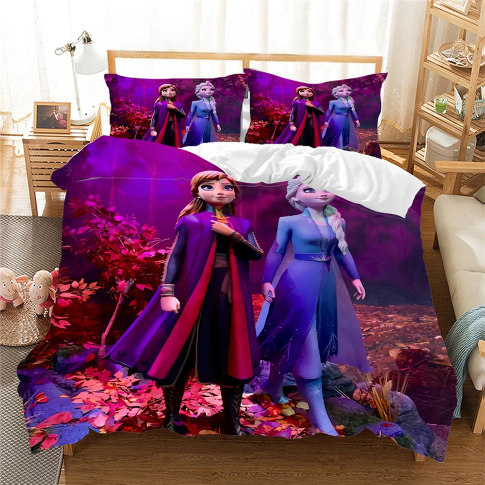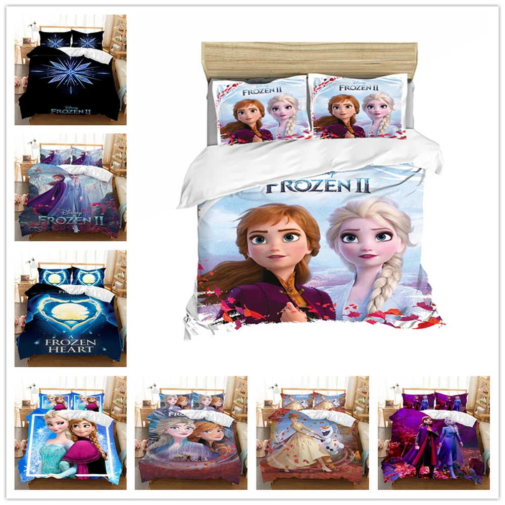 Комплект постельного белья с 3D-принтом диснеевских принцесс, Анны, Эльзы, размер Queen, King, Холодное сердце, пододеяльник, наволочки, Комплект постельного белья s