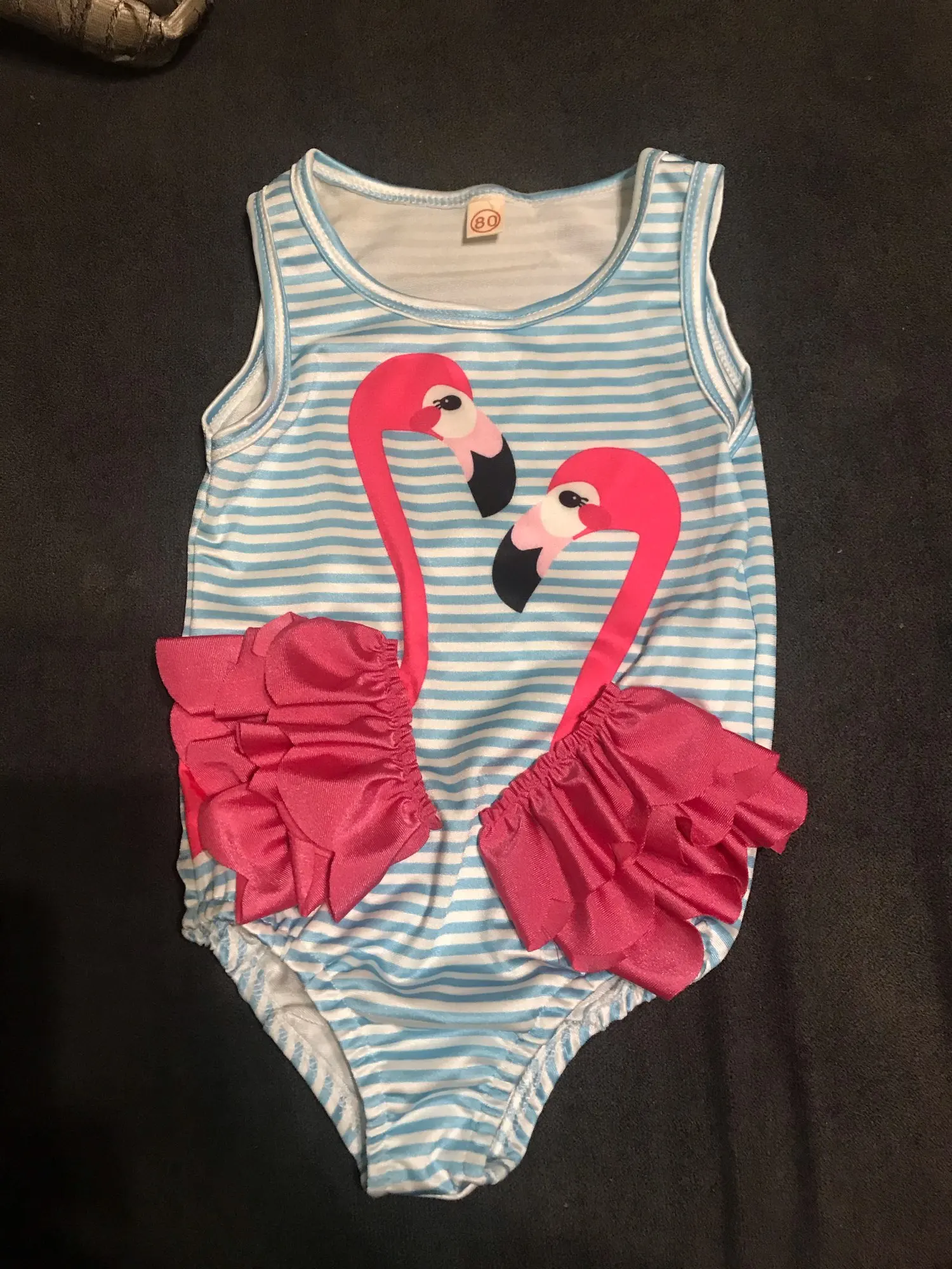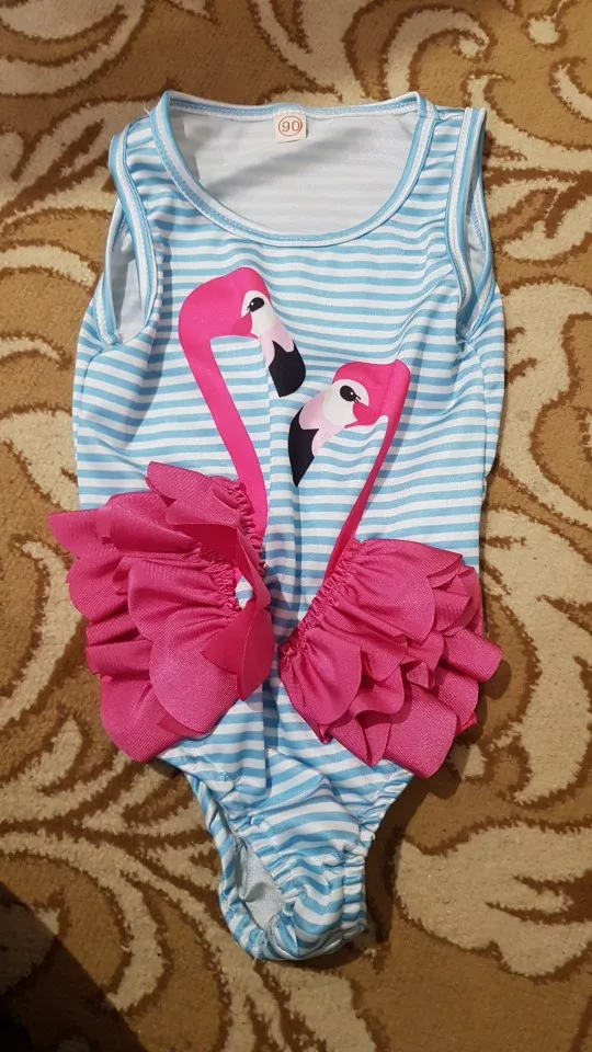 Цельный купальник CANIS, для девочек, в полоску, с рисунком фламинго