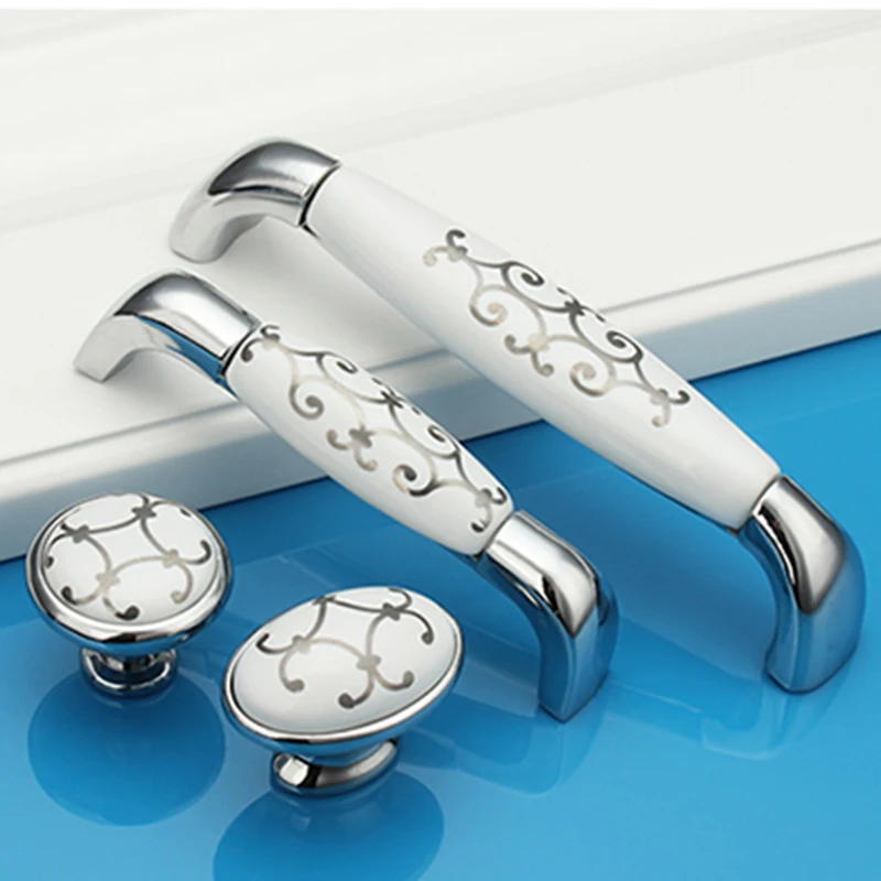 Керамика из сплава на основе цинка комод тянет ящик мебельные ручки керамические дверные ручки для кухонного шкафа серебряные ручки тянет фарфор