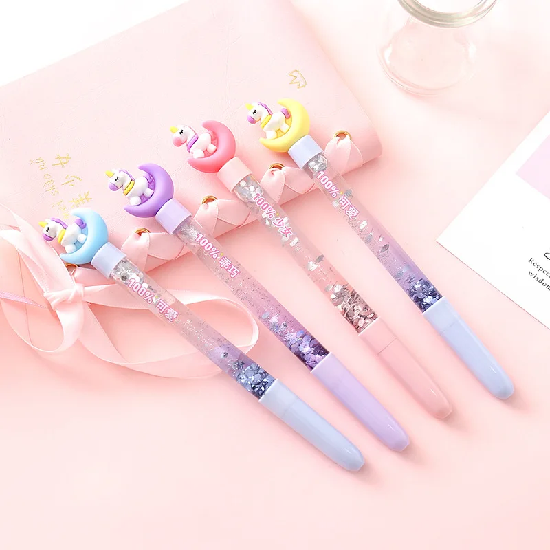 Гелевая черные чернила для ручки для письма с 3d-единорогом, мультяшным рисунком, луной, ручкой, материал Canetas, Escolar kawaii Staitonery Paperlaria, школьные принадлежности