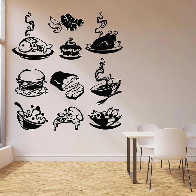 Вкусные наклейки на стену для ресторана, вкусная еда, меню, приготовление пищи, обеденная кухня, интерьерный декор, дверь, окно, виниловые наклейки, обои Q722
