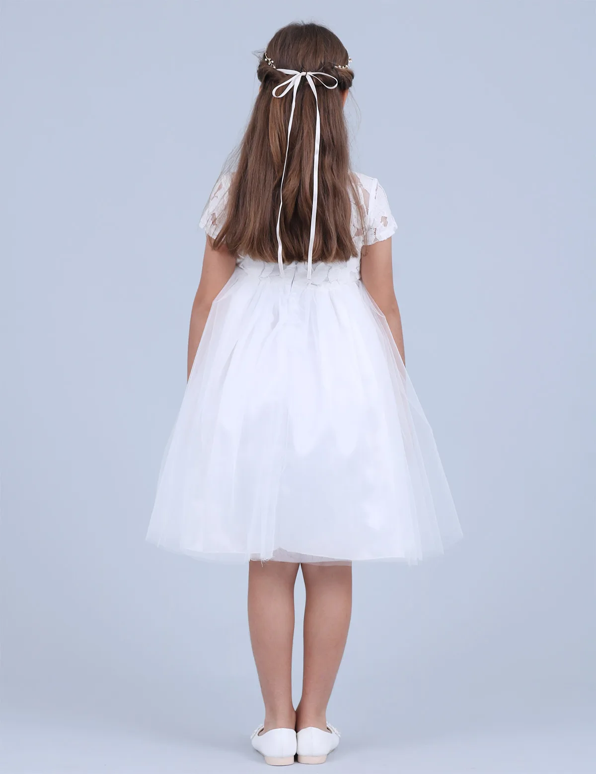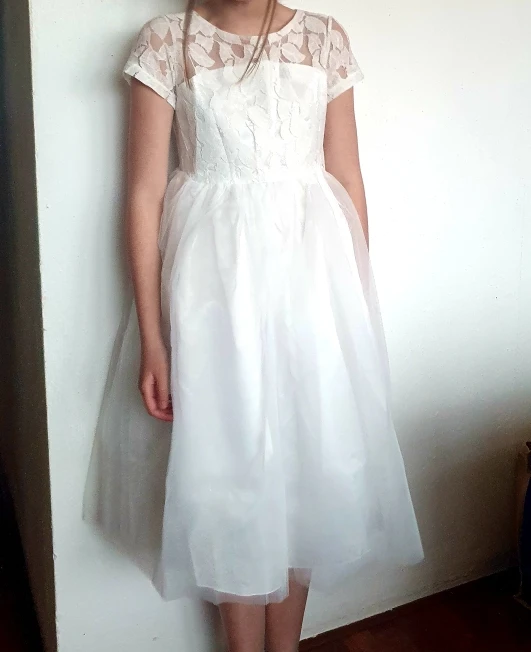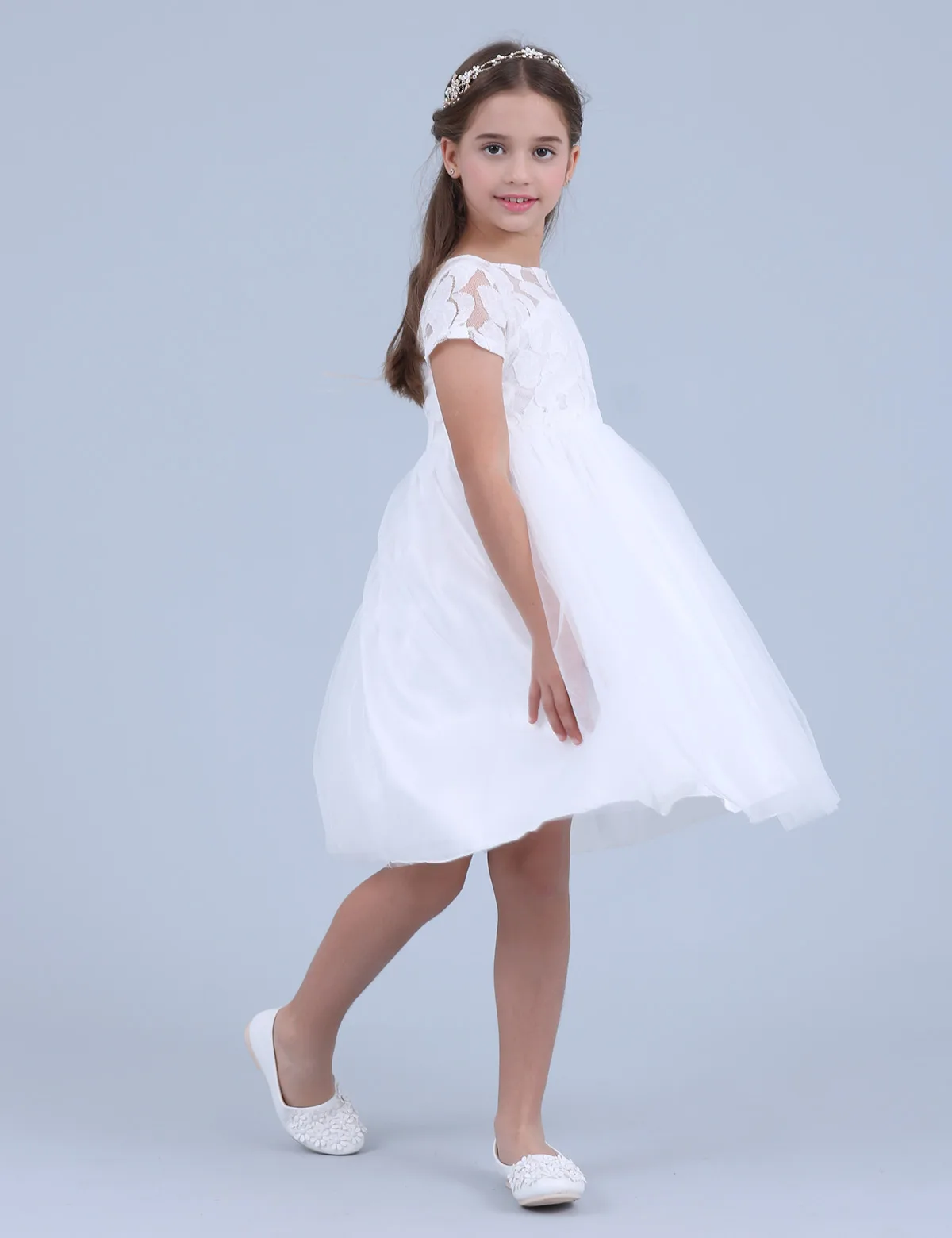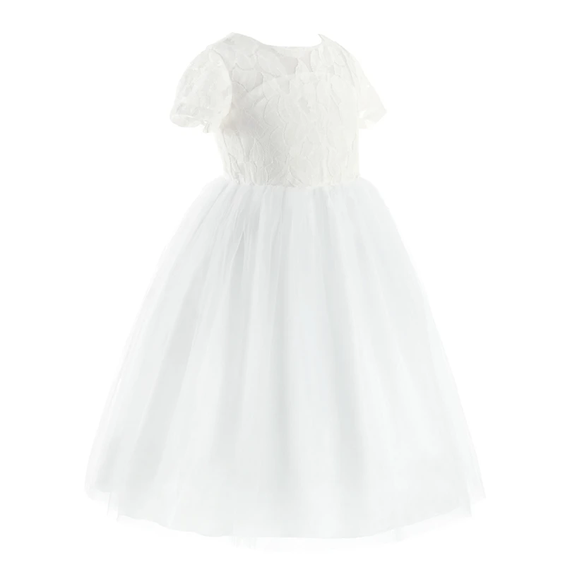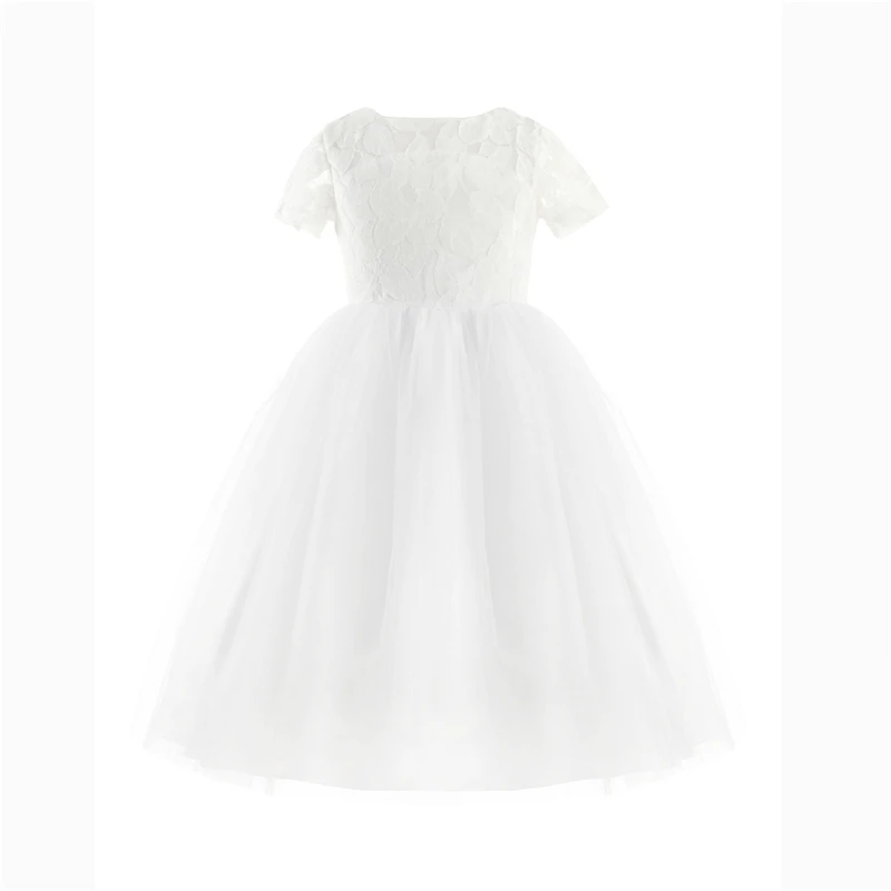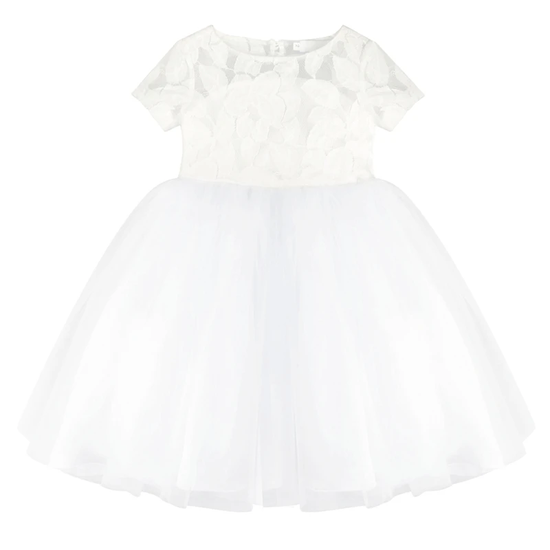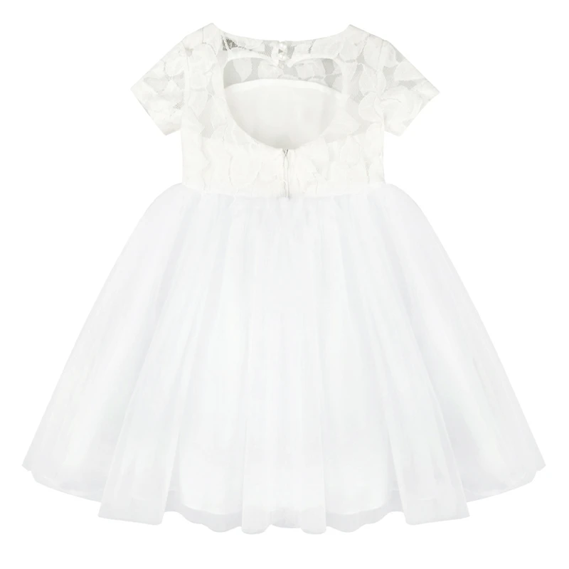 Платье детское, с коротким рукавом, кружевное, белое