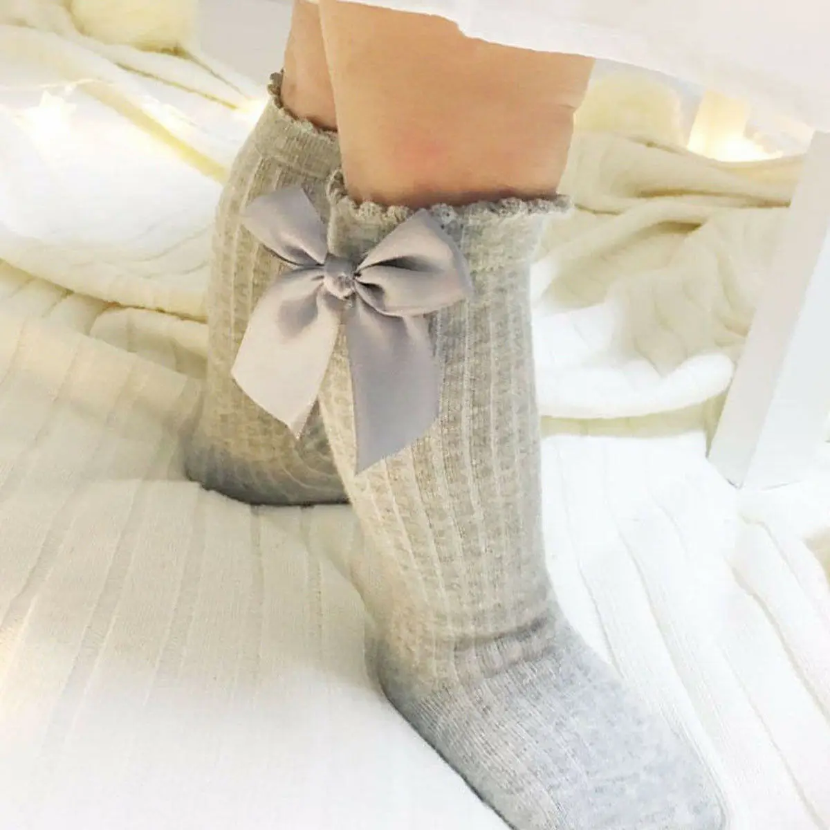 Чулки с бантом для новорожденных девочек 0-4 лет, мягкие хлопковые ...