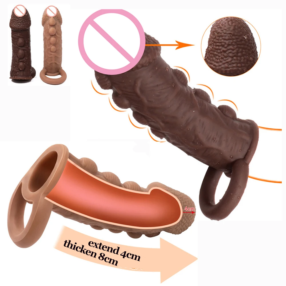 Силиконовые презервативы для увеличения пениса, увеличитель пениса для мужчин, многоразовые кольца на пенис с презервативом задержка для эякуляции, секс-игрушки