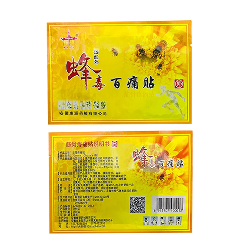 Пластырь ортопедический с пчелиным ядом, для снятия боли в суставах, шее, спине, теле, A008, 10 шт.