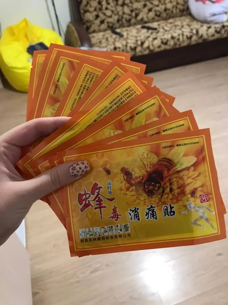 У этого продавца заказала пластыри на основе пчелиного яда и на основе трав. У других продавцов заказывала другие. Пластыри этого продавца пришли раньше всех. Пластыри на основе пчелиного яда сразу попробовала после фитнес клуба . Мне за 50 лет. Занимаюсь много лет боди-балетом, после интенсивного двухчасового урока хореографии обычно чувствую боль в правой ноге. Пахнут приятно. Приклеила три пластыря -- на колено, на голень снаружи и на то место сбоку бедра, где нога входит в таз. Пластыри начинают понемногу жечь (приятно) и вскоре реально помогают. Наверное, можно было обойтись одним пастырем, разрезав его на три части. НО я этого не знала. Рекомендую этот товар.