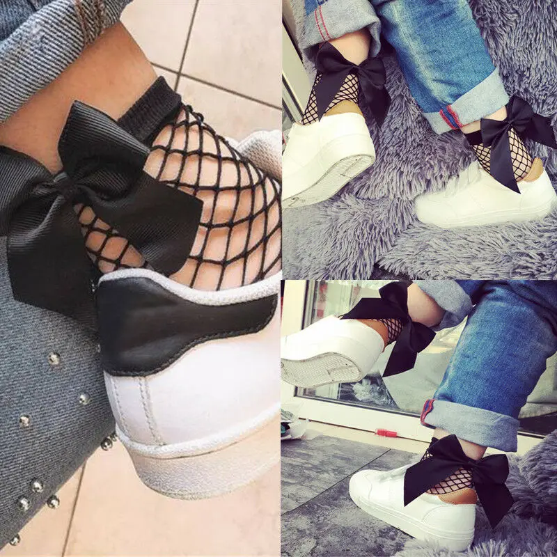 Носки женские, сетчатые, 1 пара, один размер, с бантом, кружевные, винтажные, короткие, летние, 2020