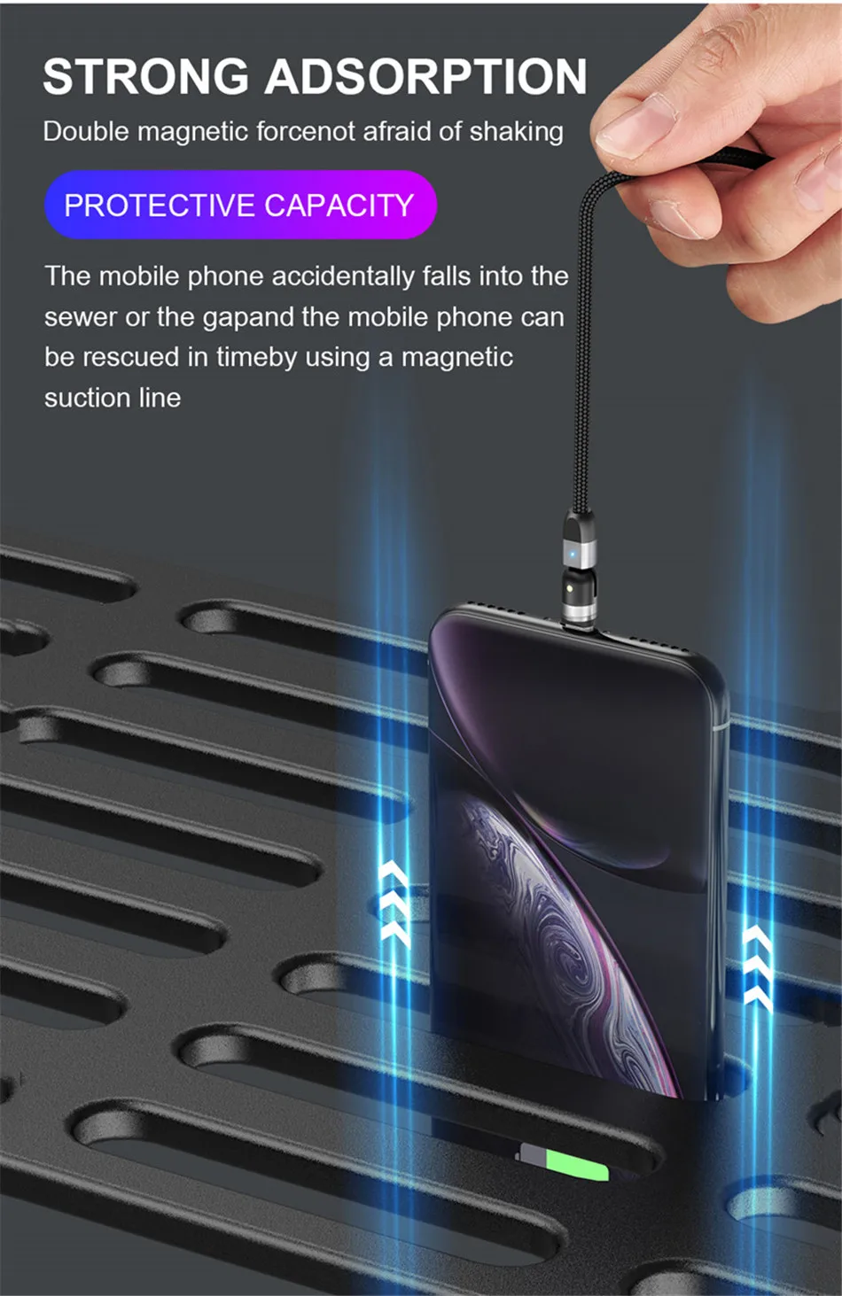 Работает только с qc1.0 и для зарядки Превосходные гибкие материалы и сильные магниты Кабель легко подключится к телефону
