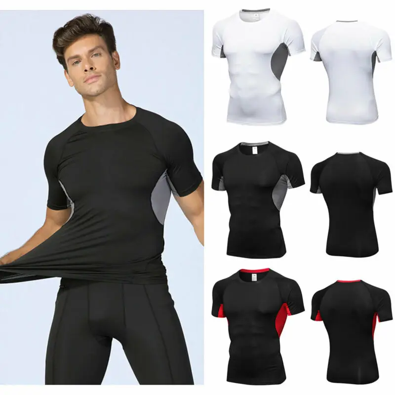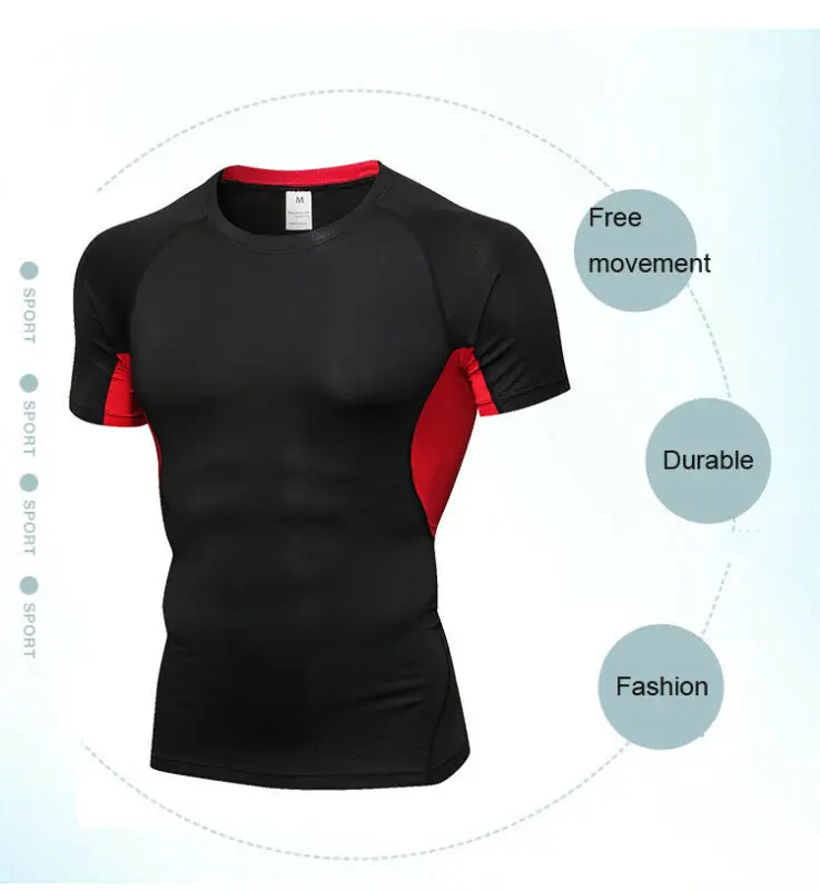 Мужская спортивная компрессионная Базовая футболка UK с коротким рукавом, облегающий топ для спортзала и фитнеса
