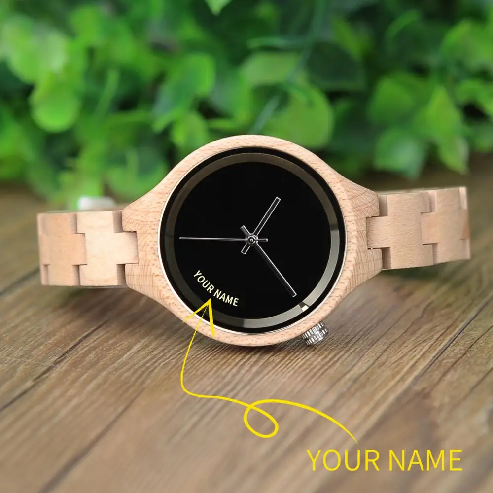 Женские наручные часы BOBO BIRD с именем на заказ, деревянные наручные часы простого дизайна, Прямая поставка, в подарочной коробке