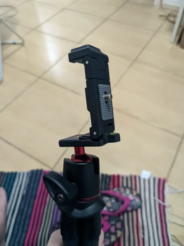 Изделие компактное, очень легкое в обращении с сочлененными ручками, рукоятками с резиновым клеем. Шаровая Головка имеет уровень для легкого позиционирования и два слота для вертикального позиционирования. Многофункциональная головка (камера и мобильный телефон) очень проста в эксплуатации, но для очень толстых мобильных телефонов или с задним бантом, будет трендовым выходом.