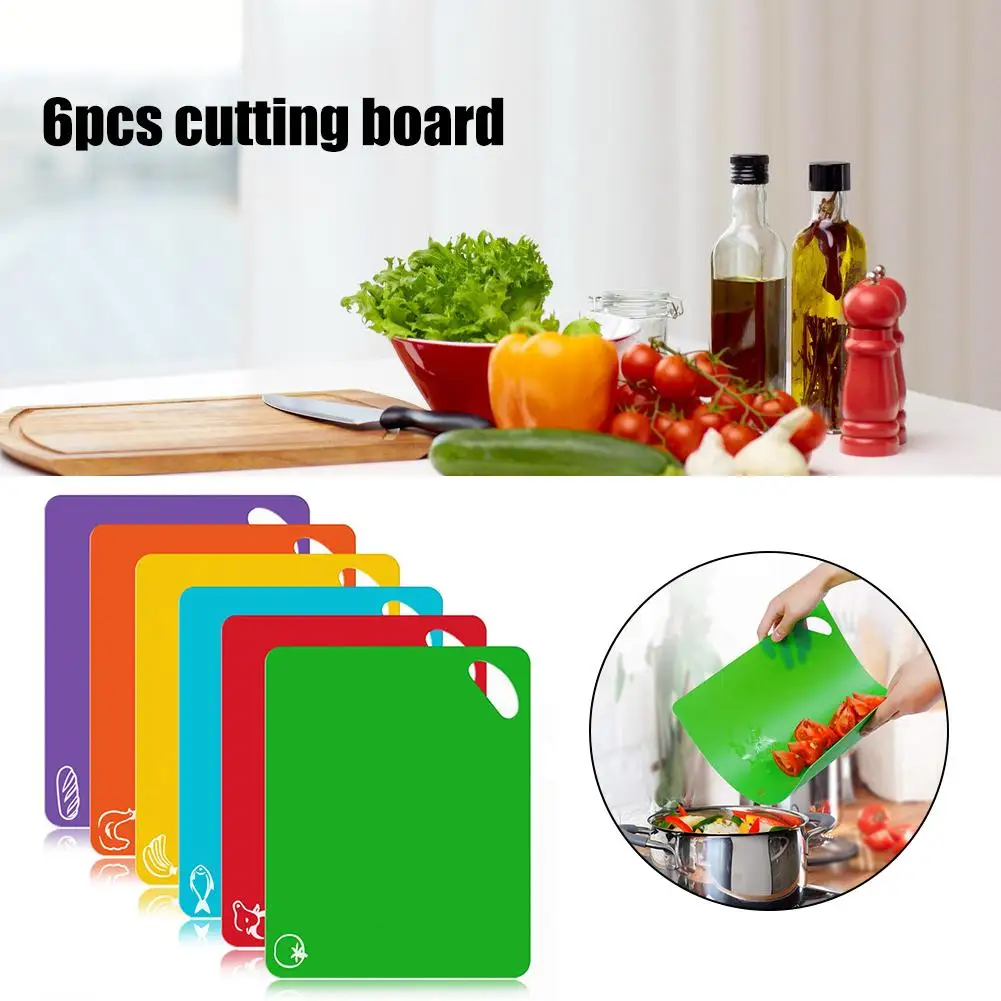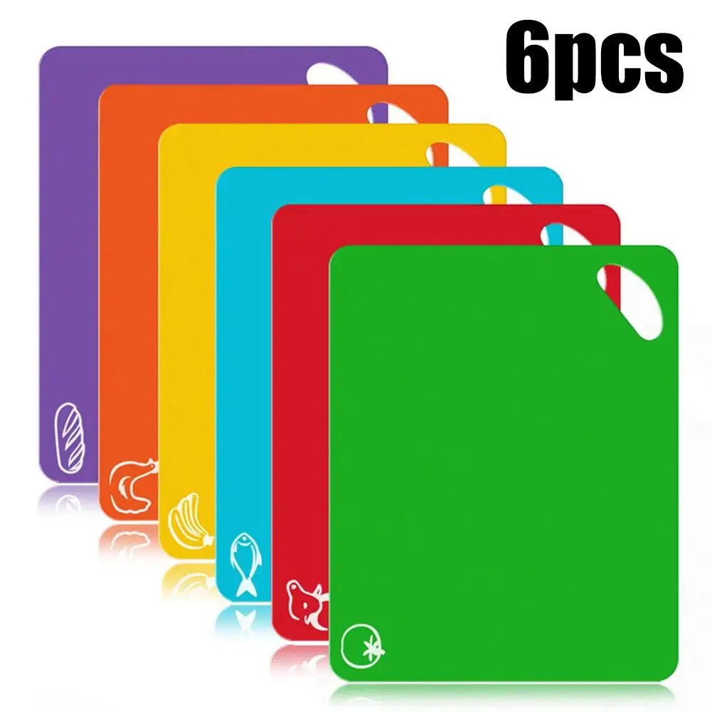 6 цветов пластиковая кухонная разделочная доска Нескользящая разделочная доска набор ковриков для овощей мяса, рыбы курицы фруктовый хлеб
