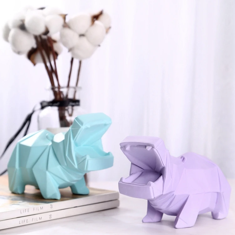 Цветная Копилка в виде бегемота, домашняя детская Милая статуя в виде розового гиппопотама из смолы, статуэтка в виде животного, украшение для творчества, подарок для детей на день рождения