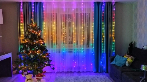 Быстрая доставка, 19 дней в канун Нового года, учитывая завал на таможне. Боялась, что не успеем получить до праздника, но спасибо продавцу. 3*2 метра хватило на 2 окна в деревенском доме. Сразу почувствовался дух Нового года и Рождества. Usb разъём очень удобен. Работает от телевизора. Можно от компа.