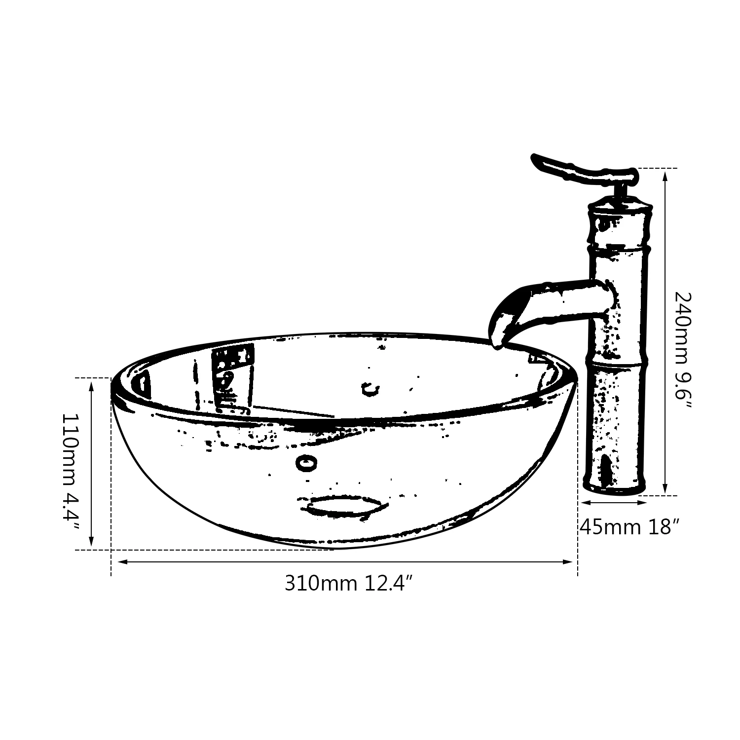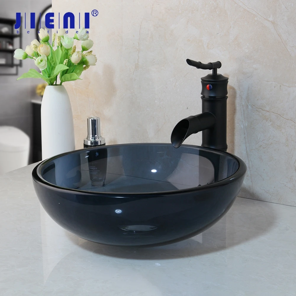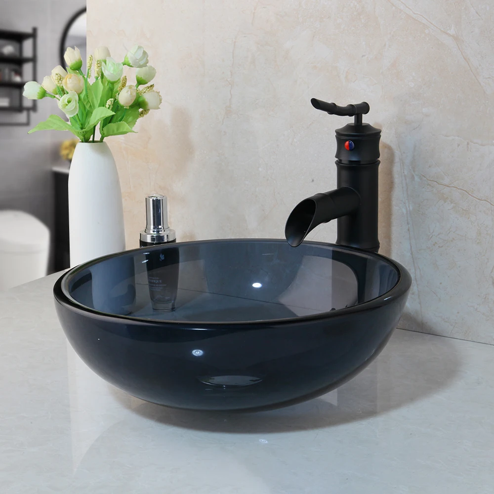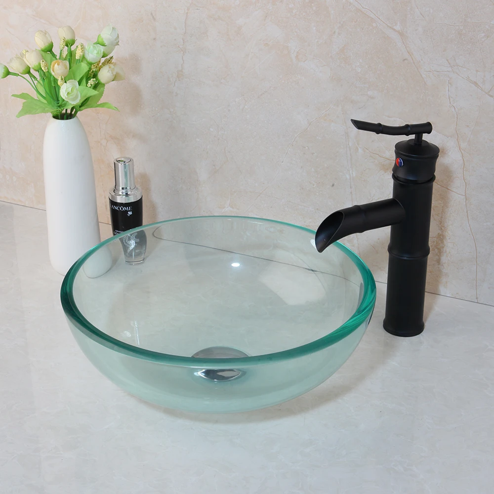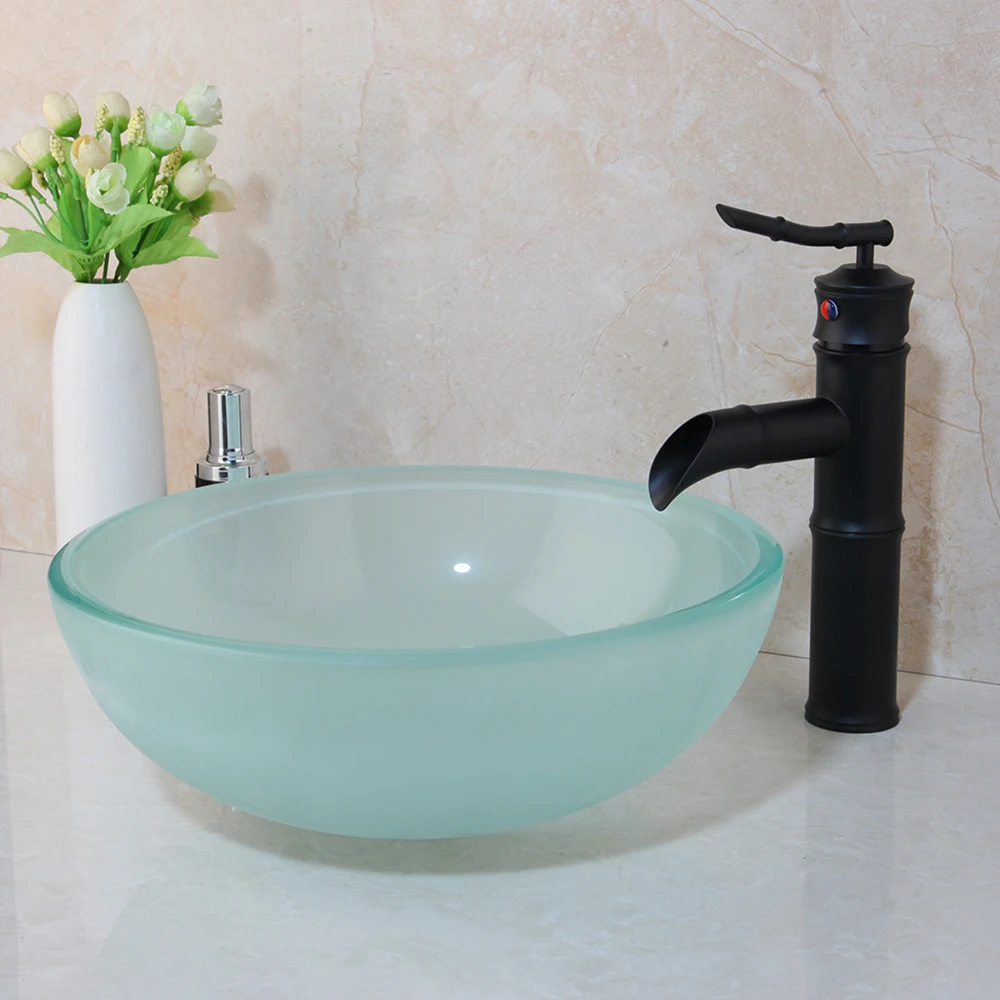 Закаленная круглая раковина для ванной, кран из бамбукового стекла Водопад, 4 цвета