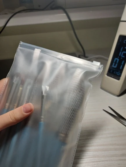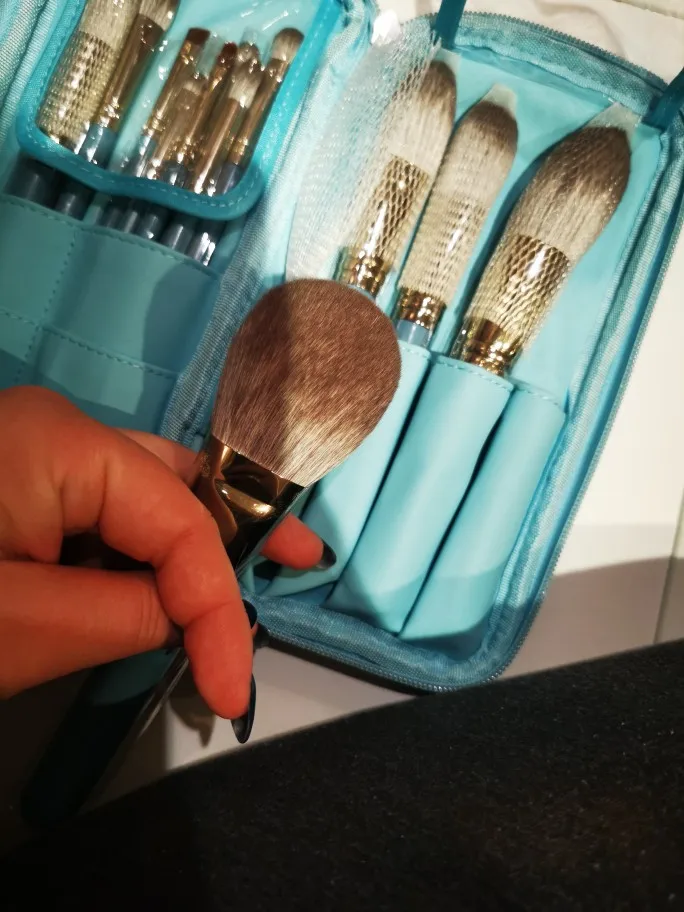 Отличный набор кистей! Единственный минус - запах клея, но это решаемо. Доставка очень быстрая, за несколько дней. Продавец охотно отвечал на все интересующие вопросы. Очень мягкий ворс, дизайн выглядит стильно. Даже чехол для кистей отличного качества. За такую стоимость просто находка, учитывая, что некоторые бренды аналогичного качества за такую цену продают одну кисть. Однозначно советую к покупке.