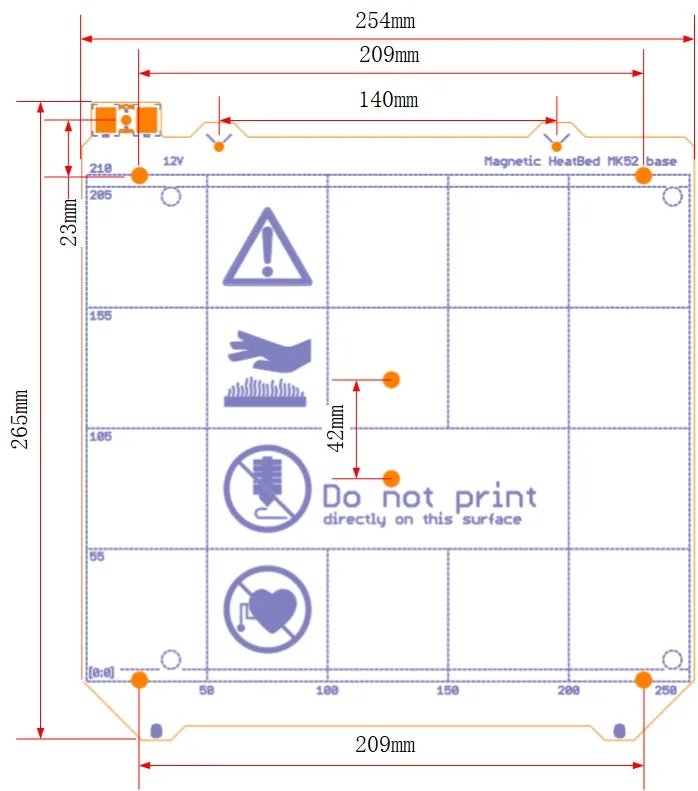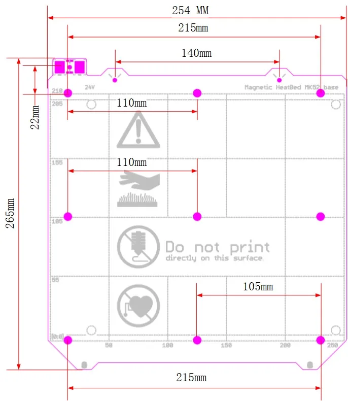 3D принтер Clone Prusa i3 MK3, Подогреваемая кровать сбез магнитов, 24В12В, проводка, Термистор для Prusa i3 MK3 MK3S
