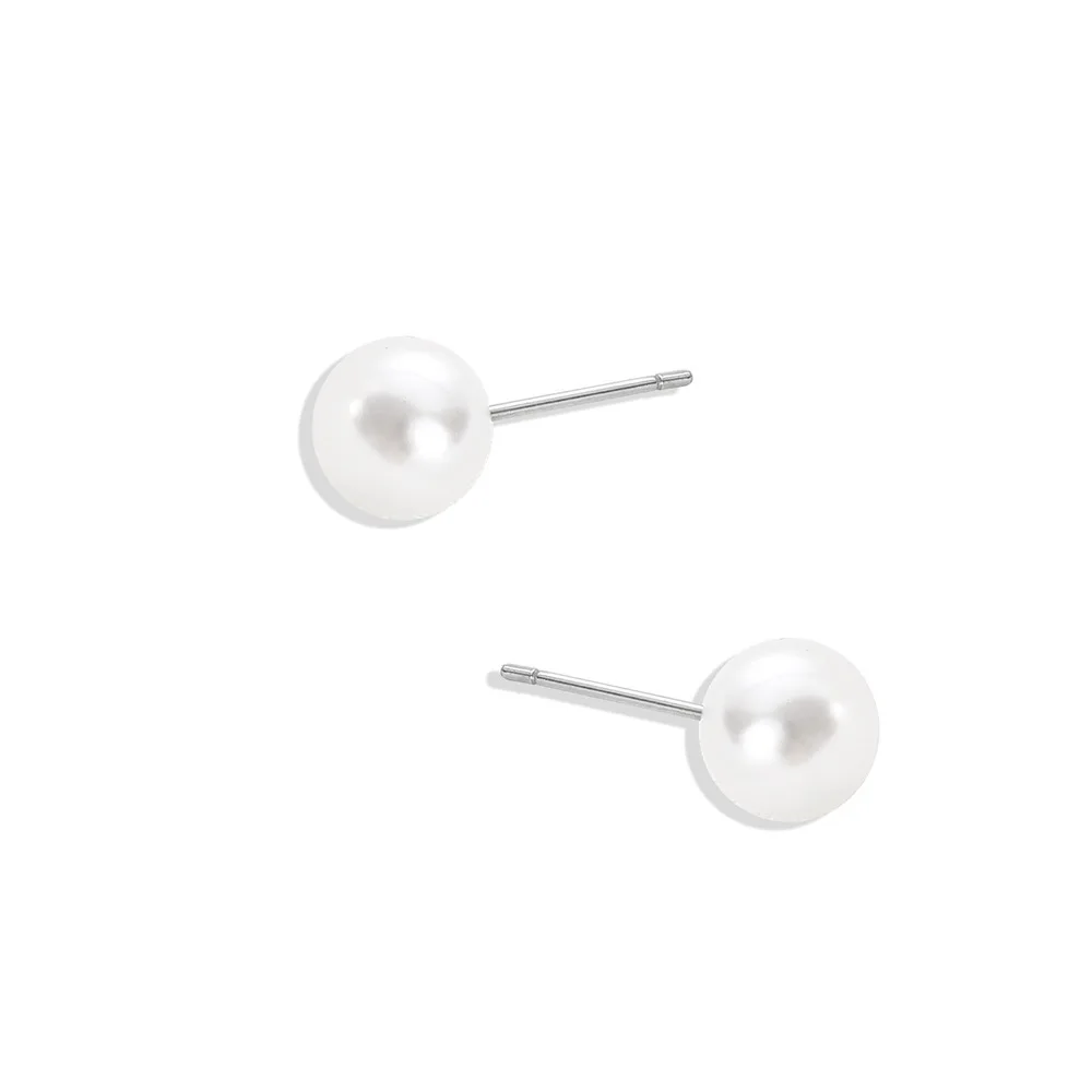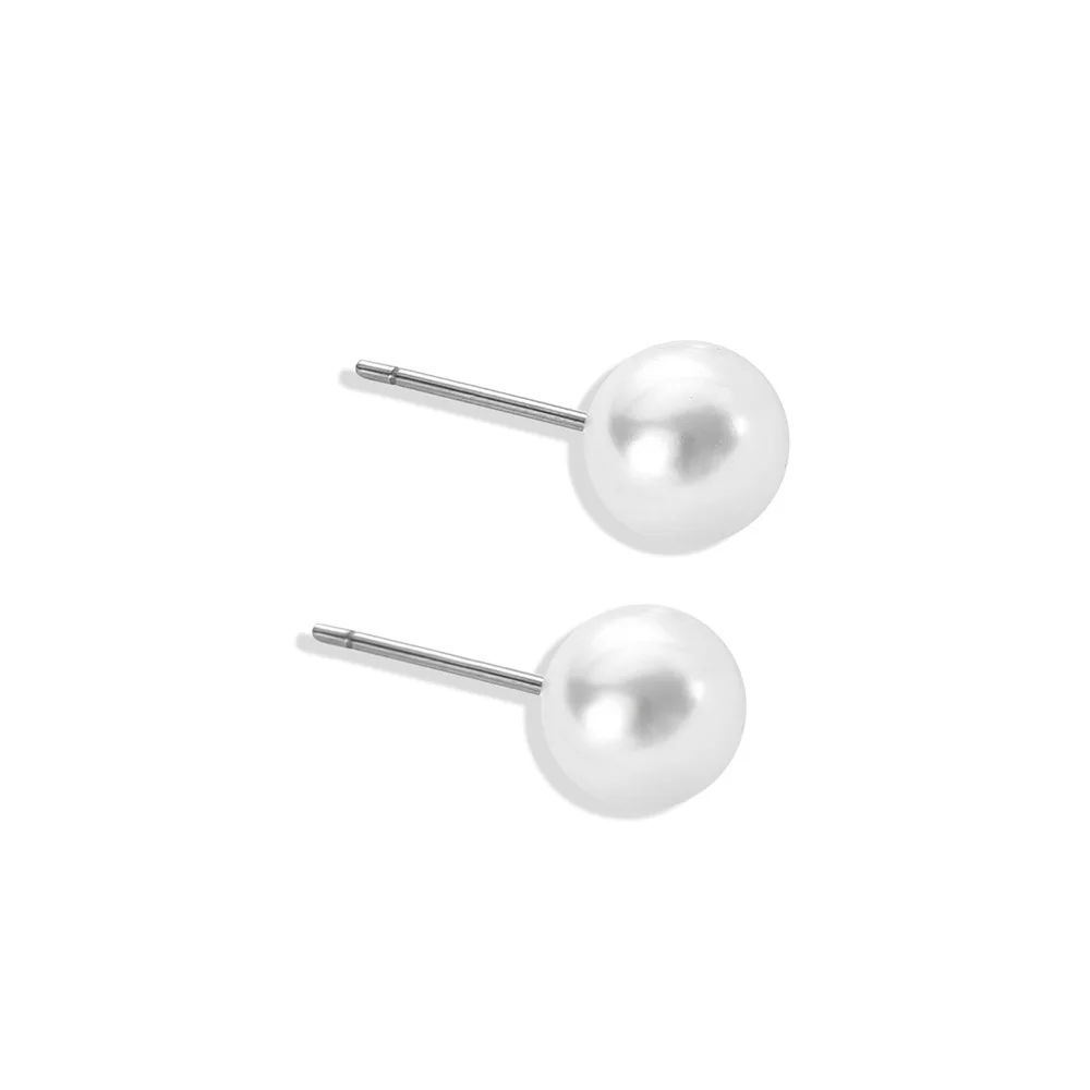 Маленькие 8 мм простые жемчужные серьги для женщин Серебряные серьги-гвоздики Популярные для вечевечерние обручальные свадебные серьги, ювелирные изделия