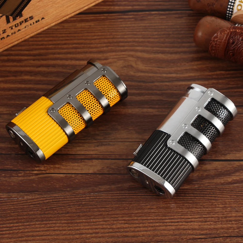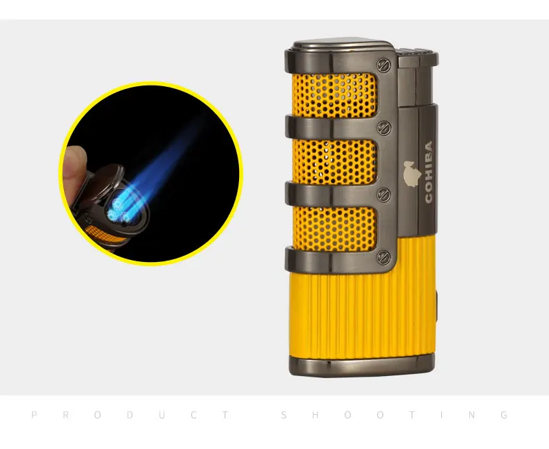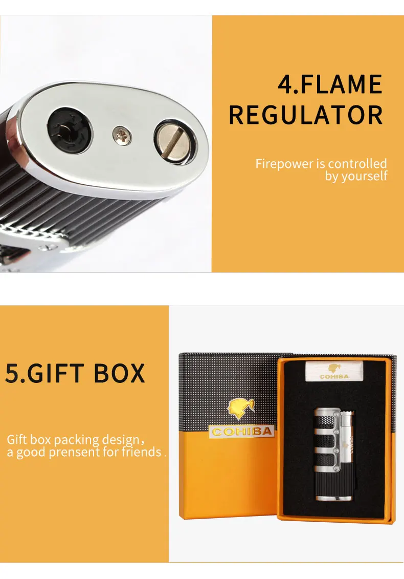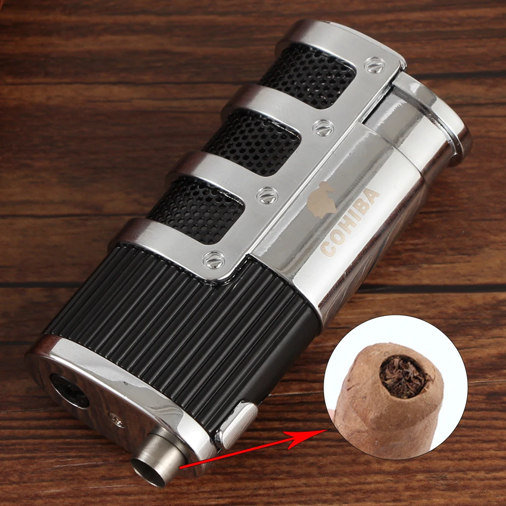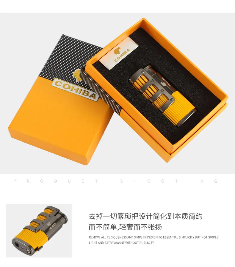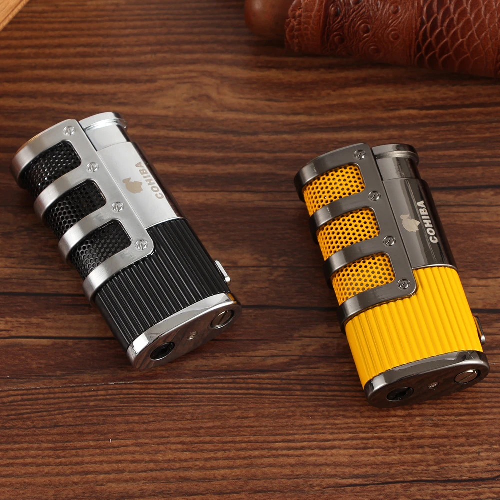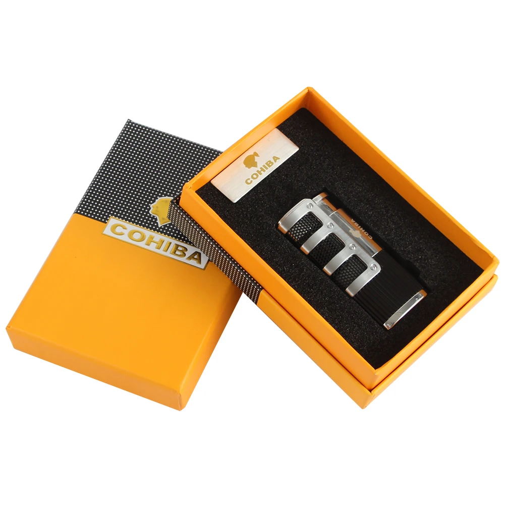 Металлическая зажигалка COHIBA, карманная зажигалка с 3 струями пламени для сигар, аксессуары для сигар, газовые зажигалки с бутаном с подарочной коробкой