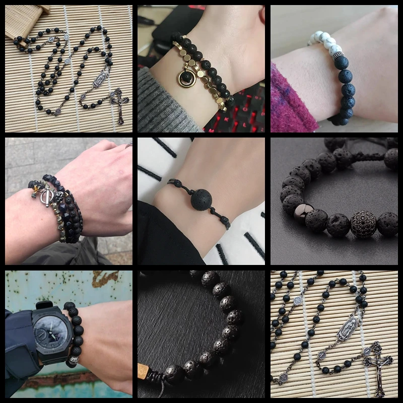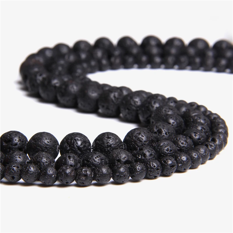 Бусины из натурального черного вулканического лава, круглые бусины из вулканического камня для ювелирных изделий 4681010 мм, для изготовления браслетов и ожерелий сделай сам