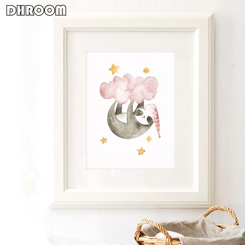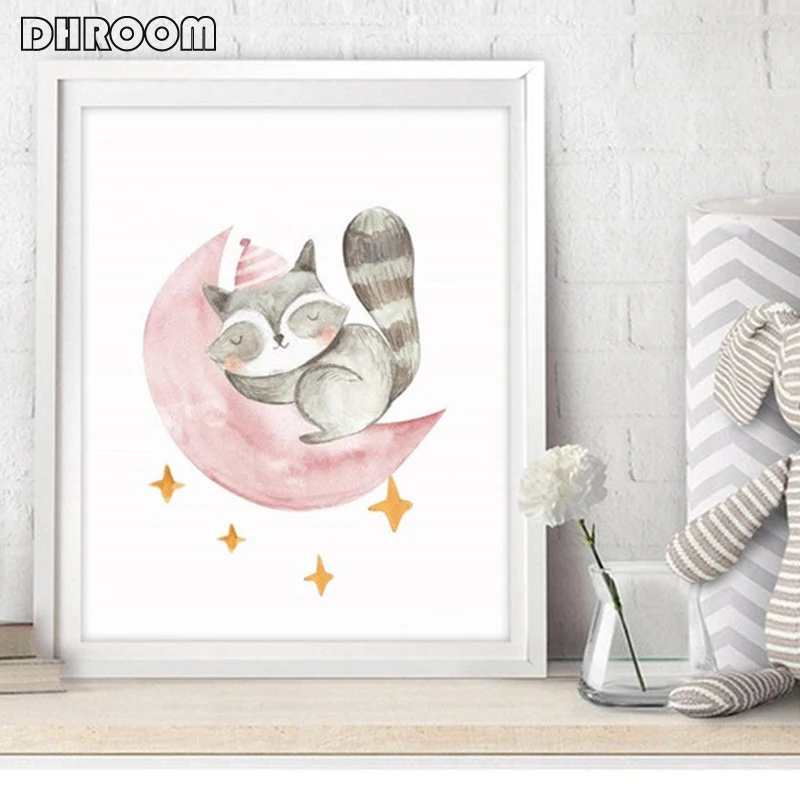 Розовый детский настенный арт спящее сафари животные принт енот Жираф панда плакаты холст печать живопись девочка декор комнаты