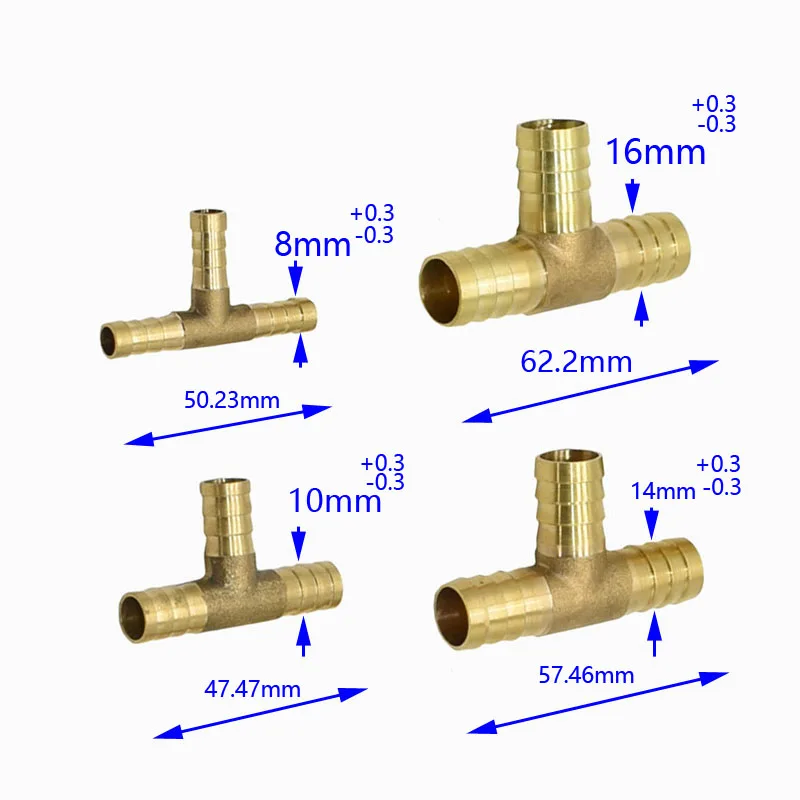 Т-образный тройник 8 мм 10 мм 12 мм 14 мм 16 мм, латунный соедините...